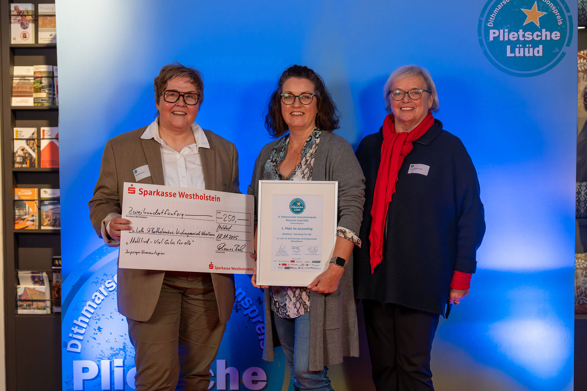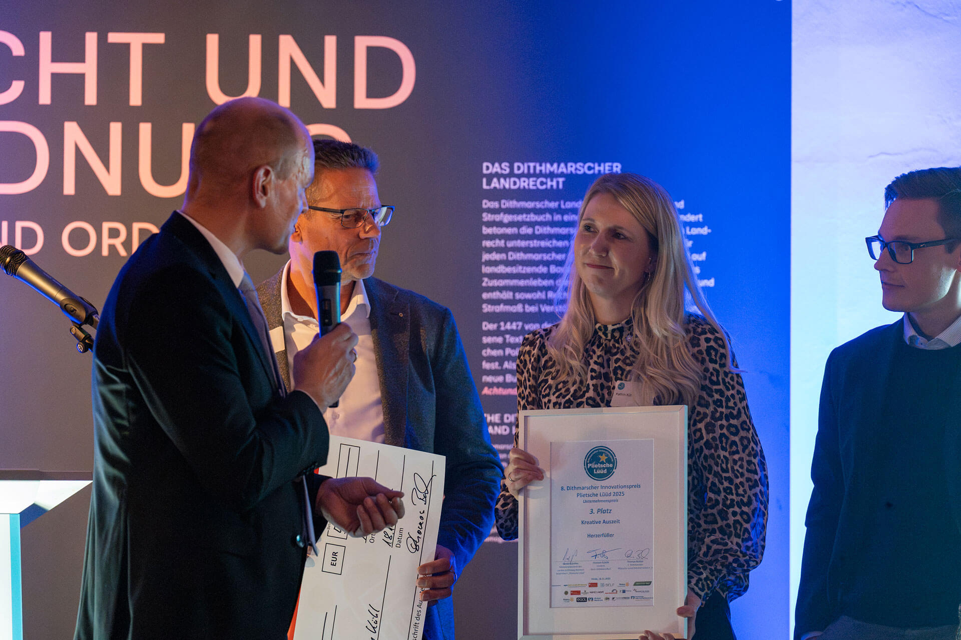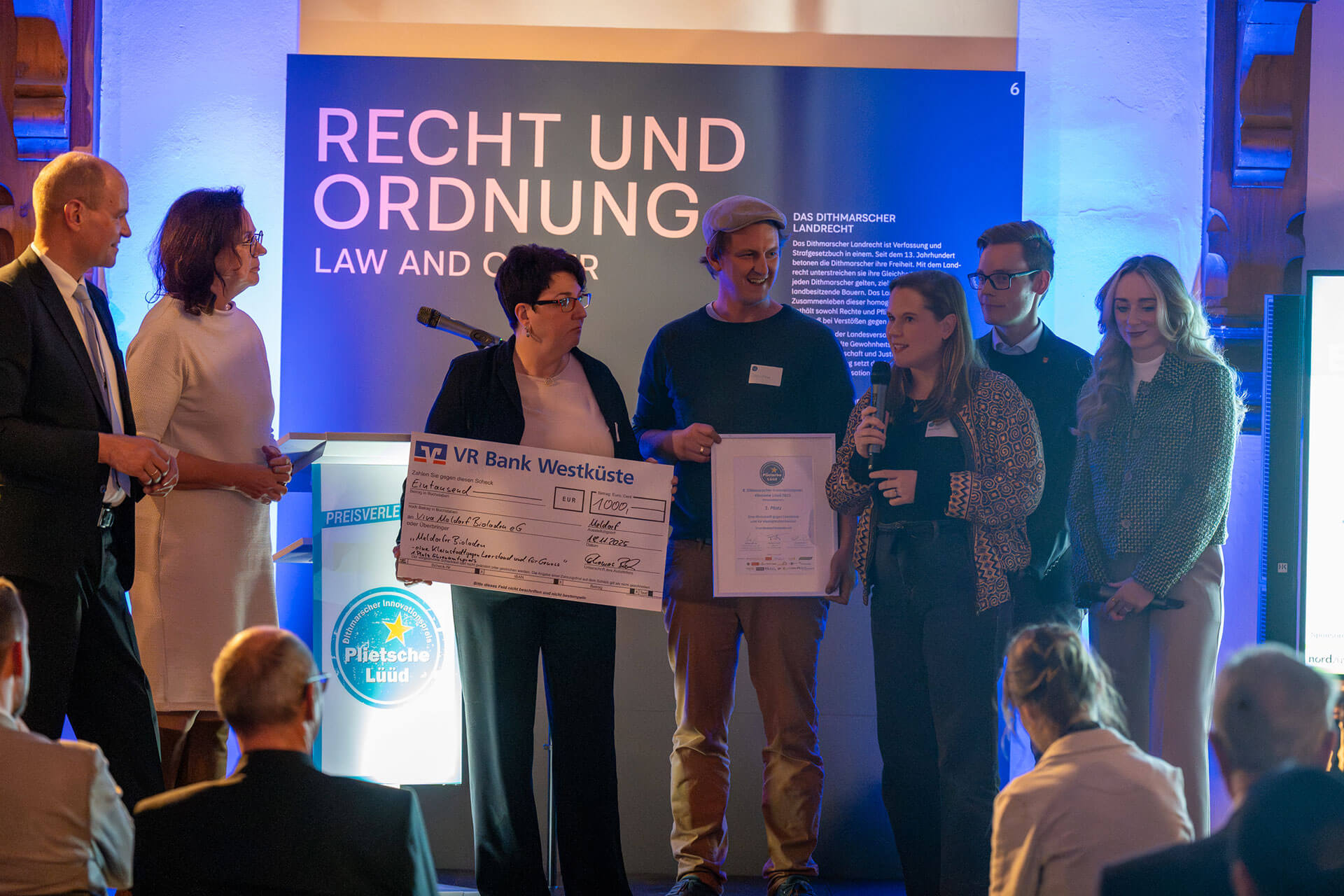Die Jury und das Publikum haben entschieden: Der 8. Dithmarscher Innovationspreis „Pliet-sche Lüüd“ wurde am 18. November 2025 im Dithmarscher Landesmuseum in Meldorf an neun Preisträgerinnen und Preisträger in drei Kategorien feierlich verliehen. In diesem Jahr konnten sich wieder „plietsche Lüüd“ aus Dithmarschen bewerben und damit zeigen, was in der Region steckt! Die diesjährige Jury, Persönlichkeiten aus verschiedenen Bereichen, sei es der Landrat, die Schulleiterin des BBZ, Unternehmer aus der Region oder Personen aus dem Sport, tra-fen die Vorauswahl für das Online-Voting. Die Ergebnisse des Online-Votings sind mit einem Anteil von 50 % in die finale Entscheidung eingefloßen. Das Jury-Voting machte dann einen weiteren 50 %-Anteil bei der Ermittlung der Gewinnerinnen und Gewinner aus. Wie innovativ, kreativ und plietsch die Dithmarscherinnen und Dithmarscher dabei waren, zeigen die Siegerkonzepte: